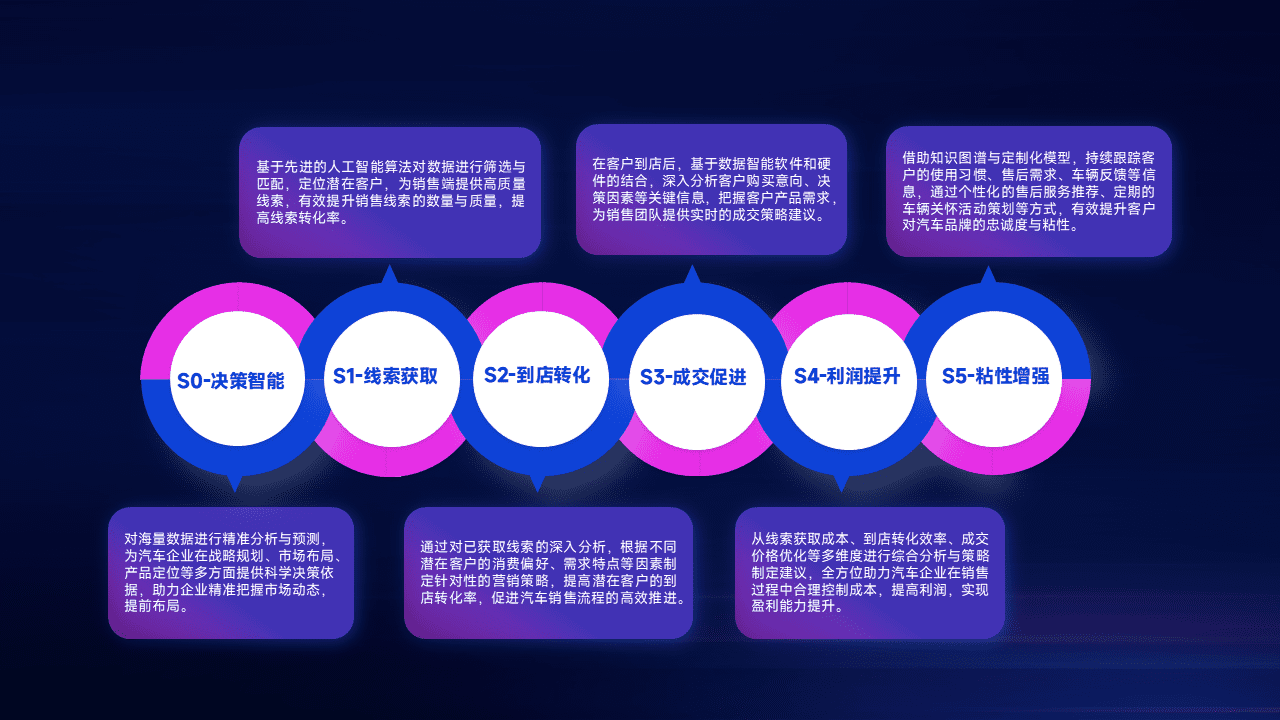 通过拓宽潜在客户来源、、优化线索分配并提高到店转化率,,,,以增强销售效率。。同时,,,利用线索数据不断优化分析模型,,,有效提升转化率,,,,扩大营销影响力。。